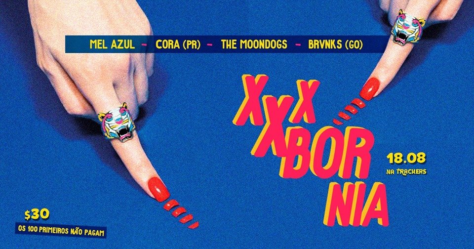 Line up: bandas – Mel Azul, Cora (PR), BRVNKS (GO) e The Moondogs | djs – DIDI EFFE E LEKA PERES (PU – TA), Mario the golden goat/ Lucefer, Fetusborg/ Dr. Herman.