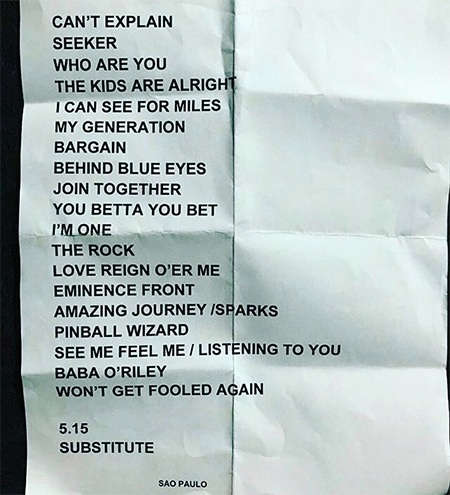 Por insistência da plateia, Townshend ainda concedeu que a banda voltasse e tocasse mais duas músicas “5:15” e “Substitute”, quando finalmente implorou aos risos para os presentes: “Go home!”.